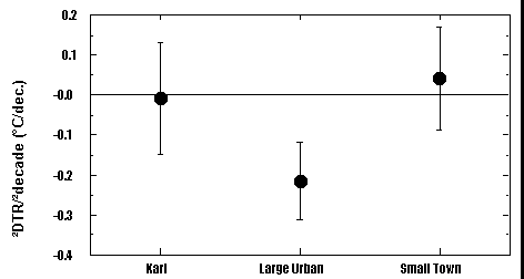 3) For comparative purposes, we examine the 12-station South African diurnal temperature range data of Karl et al. (1993) over this 1960-1990 period. In commenting on the potential influence of urban growth on these data, Karl et al. (1993, p. 1014) state that the data from "South Africa include some stations from urban areas, but countrywide decreases of the DTR are not overwhelmed by these stations."